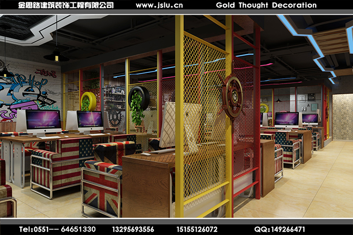 金思路裝飾,設(shè)計施工國家二級資質(zhì),安全生產(chǎn)許可證持有單位,專注工裝設(shè)計20年,專業(yè)值得信賴!金思路裝飾打造全新網(wǎng)咖模式,全新設(shè)計理念,以網(wǎng)咖運(yùn)營為設(shè)計核心,一站式為您服務(wù),給用戶帶來好的體驗(yàn)。我們做好每一個網(wǎng)吧設(shè)計服務(wù)環(huán)節(jié),力求精致,發(fā)揮團(tuán)隊精神提供優(yōu)質(zhì)的網(wǎng)吧裝修設(shè)計服務(wù),打造令您滿意的作品!