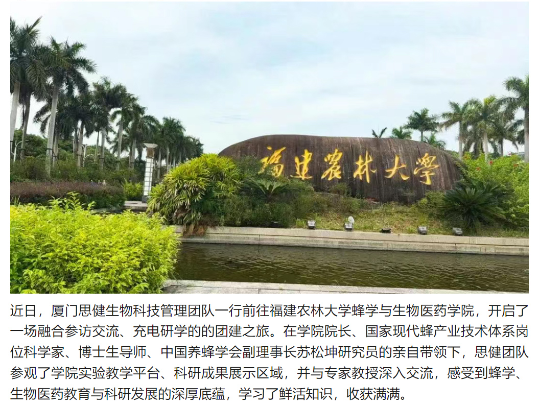 思健管理團(tuán)隊(duì)赴福建農(nóng)林大學(xué)蜂學(xué)與生物醫(yī)藥學(xué)院團(tuán)建研學(xué)
