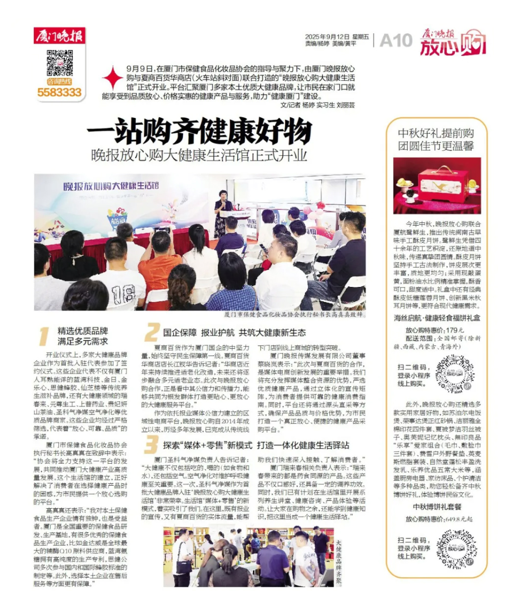 廈門晚報(bào)放心購(gòu)大健康生活館正式開業(yè)啦!思健蜂膠等系列大健康保健食品受邀入駐